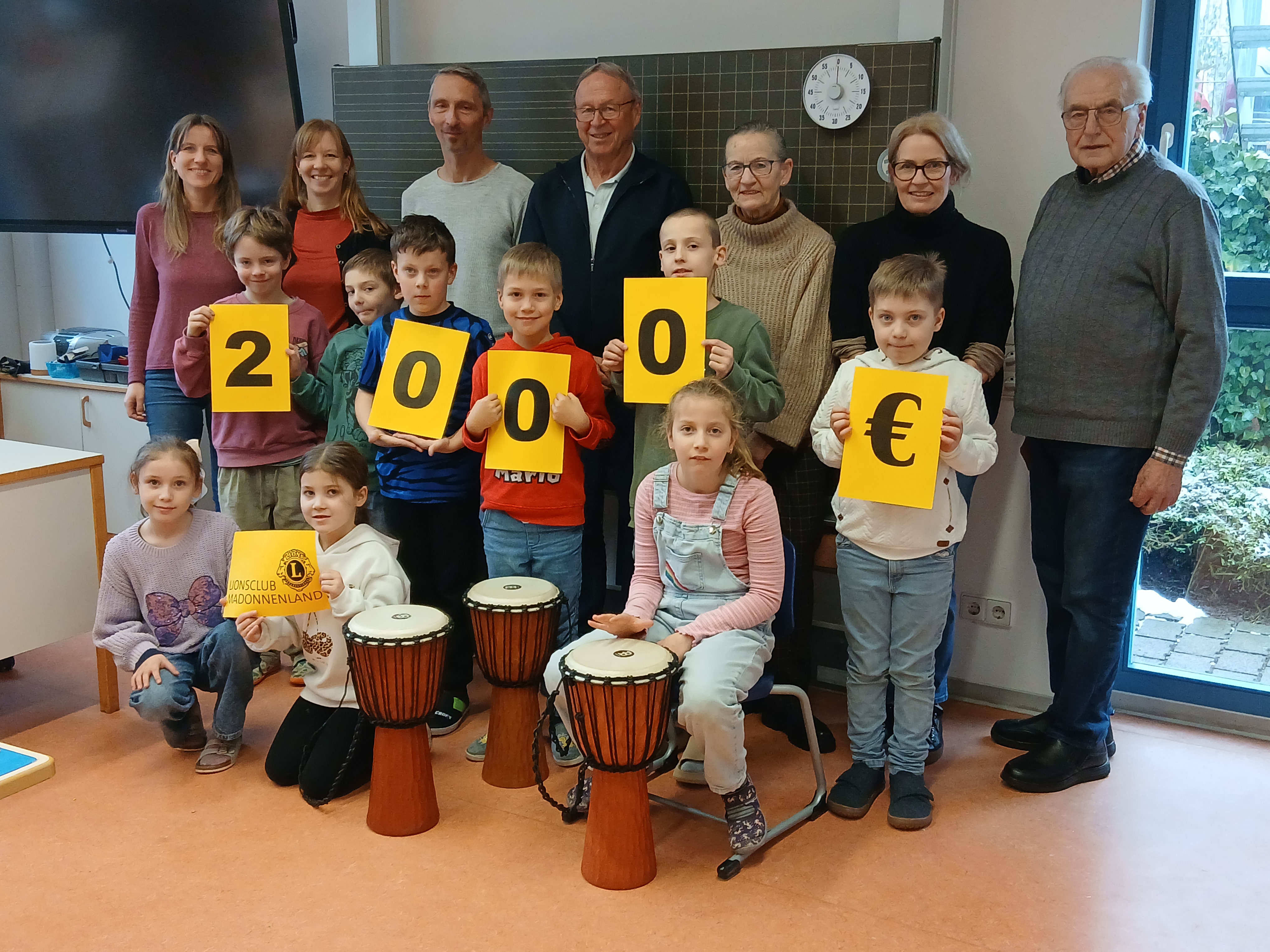 Buchen. (adb) Dem Lions Club Madonnenland ist die nachhaltige und wertvolle Unterstützung der Jugend ein wichtiges Anliegen – was einmal mehr am Donnerstag die Spendenübergabe von 2.000 Euro an der Buchener Ottfried-Preußler-Schule unterstrich. Das Geld kommt der klangvollen, seit mehr als zehn Jahren gepflegten Kooperation mit der JMK-Musikschule zugute und ermöglicht wöchentliche Musikerziehung.